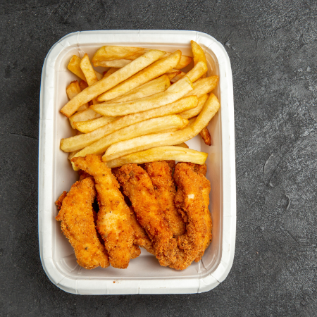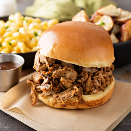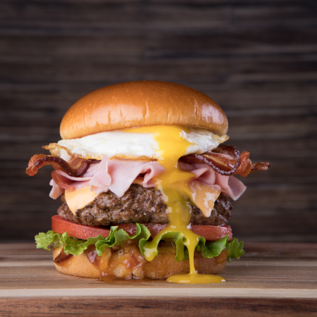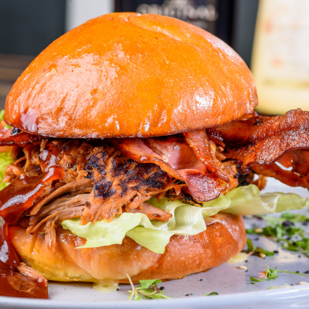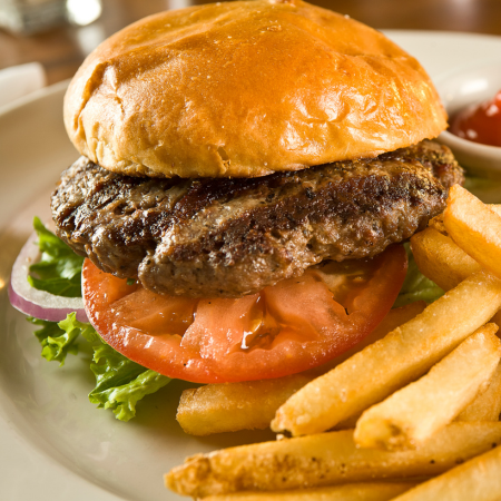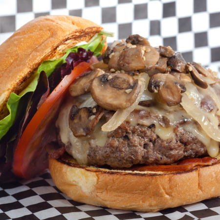 Served with mayo, lettuce, tomato & onion on a fresh brioche bun. With side & garnish.